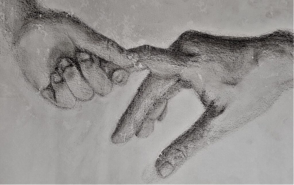 A child watches, looks up, and looks through; seeing within. It echoes the concience, looks for space.  Space to walk away and return. No judgment, no criticism, no double edged sword. Growing is the space between holding on and letting go. Learning in the space of connection. Yearning for the space it will thrive in.